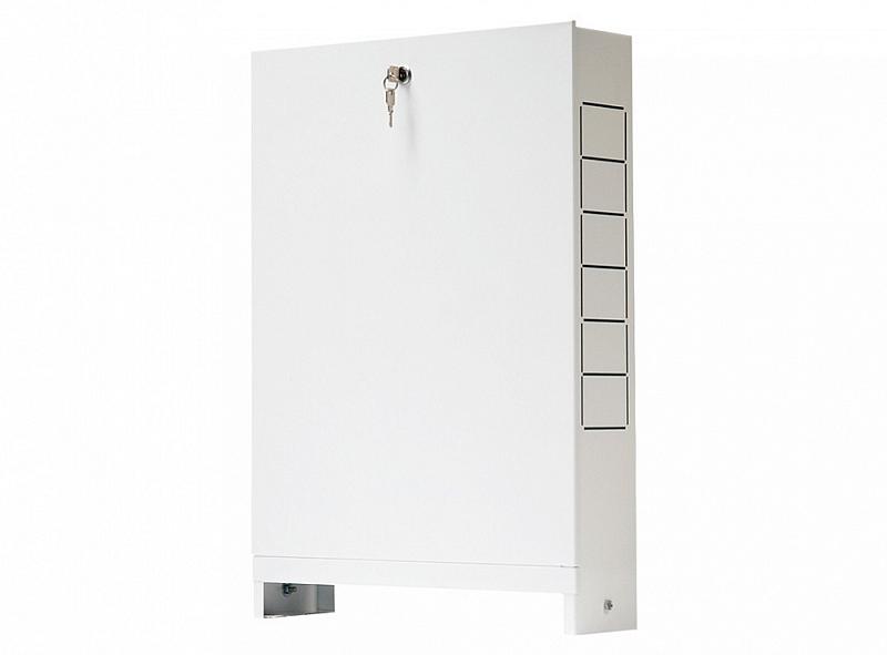 (радиаторной или напольной) с поквартирной разводкой или водопровода Шкаф выполнен из оцинкованной стали, окрашен порошковой краской RAL 9016 с предварительным нанесением фосфатной пленки для