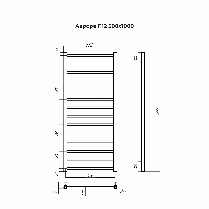 Terminus Аврора П12 500х1200 Водяной полотенцесушитель