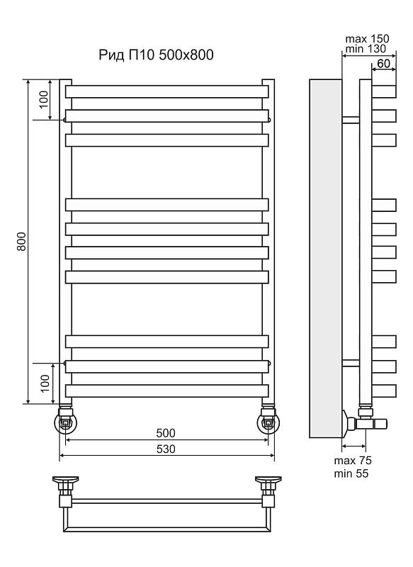 | Оснащение | Заглушки, кран Маевского, паспорт изделия, телескопические держатели к стене |