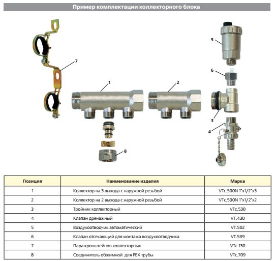 (VTc.550.N) Латунный никелированный коллектор на 2, 3 или 4 выхода диаметром 1/2" с внутренней резьбой. Диаметр коллектора – 3/4 или 1", резьба – внутренняя/наружная. Рабочая температура теплоносителя – до 130 °С, давление – до 16 бар. Применяется для распределения потоков жидкостей в контурах теплого пола, радиаторного отопления, холодного и горячего водоснабжения.
